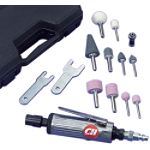 At 25,000 RPMs, provides the speed to remove material quickly. Kit includes Die Grinder, 1/4 inch collet,(5) 1/4 inch grinding stones, (5) 1/8 inch grinding stones, 1/8 inch collet, (2) collet wrenches, 1/4 inch industrial plug - 1/4 inch NPT, and a plastic carrying case.... |