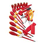 Meets ASTM F1505, EN/IEC 60900, NFPA-70E specifications. Includes eleven 12 point inch sockets (1/4, 9/32, 5/16, 11/32, 3/8, 7/16, 1/2, 9/16, 5/8, 11/16, 3/4 in.), two extension bars (5 in. and 10 in.), 3/8-inch drive reversible ratchet, electrician's knife, slotted (9/64, 3/16, 1/4 in.), Phillips (#1, #2, #3), 6.3 in. long nose pliers, 6.3 in. diagonal cutters and 8 in. combination pliers. Molded storage box. Wt. 9.07 lbs.... |