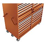 Chest with orange metallic shell and drawers, full-extension drawers with ball-bearing drawer slides, full-width aluminum drawer pulls, recessed aluminum side handles, one cover support and an internal locking system with two reversible over-molded keys. 6,975 total cu. in. of storage. 78 lbs. 40-1/2W x 12D x 19-1/2H in.... |  Craftsman Professional 10 Drawer, 56 in. Chest - Orange Metallic | Product# 00995596000P Selling for $3149.99