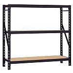 Muscle Rack Heavy-Duty Rack - Black. Carbide Heavy-duty industrial grade welded steel frames and beams provide maximum strength. Up to 1,500 lb. capacity per shelf of evenly distributed loads. Assembles in minutes without tools, nuts or bolts. Three shelf levels with particleboard adjust in 3 increments. Expands easily using dual locking system in posts. Black textured finish conceals dirt and grime.... |