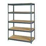 Shelf Heavy Duty Maxi Rack - Industrial Gray. Heavy-duty 16-gauge steel frame and 5 particleboard shelves support up to 5,000 lbs of evenly distributed loads overall. Easy to assemble with just a tab from a rubber mallet, no nuts or bolts required. Includes five shelves adjustable on 1-1/2" centers. Split post design allows unit to be assembled vertically or horizontally. Durable gray baked enamel finish.... |