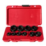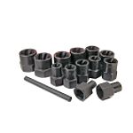 The set includes five bolt-out removers. The individual bolt-outs have an internal 1/2 in. drive and an external hex drive. The sizes are #8 (14 mm. & 9/16 in.), #9 (15 mm.), #10 (16 mm. & 5/8 in.), #11 (17 mm. & 11/16 in.) and #13 (19 mm. & 3/4 in.). The set will fit into the case of its companion set, #52060.... |