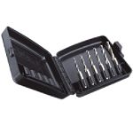 Save precious time and effort with these innovative bits that allow you to drill, tap and deburr in one operation. Ensures proper drill for tap size. Tapered design prevents thread damage. Set includes one each of the following: 6/32, 8/32, 10/24, 10/32, 12/24 and 1/4 in. bits in case. Wt. 1.35 lbs.... |