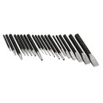 20 piece punch and chisel set is hot forged from alloy steel for maximum strength. Contains: 3/32", 1/8", 5/32", 3/16", 1/4", 5/16" Pin Punches; 1/8", 5/32", 3/16", 1/4", 5/16" Starter Punches; 1/4", 3/8", 1/2" Center Punches; 1/4", 3/8", 1/2", 5/8", 3/4", 7/8" Flat Chisels. Packaged in a roll.... |