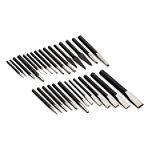 Designed to remove loosened pins from assemblies, after initial loosening as a starter punch. Contains: 3/32", 1/8", 5/32", 3/16", 1/4", 5/16", 3/8" Pin Punches; 3/32", 1/8", 5/32", 3/16", 1/4", 5/16" Starter Punches; 1/4", 5/16", 3/8", 1/2" Center Punch; 1/4", 5/16", 3/8", 1/2", 5/8", 3/4", 7/8" Flat Chisels; 1/4", 5/16" Cape Chisels; 5//16" Half Round Nose Chisel; 5/16", 3/8" Diamond Point Chisels. Packaged in a roll.... |