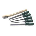 6 piece set features 5 different types of files and a wire brush for a variety of uses. Small sizes aid in accessibility.Contains: 4" Mill Bastard, 4" Round Bastard, 4" Slim Taper, 4" Square Bastard, 4" Flat Bastard Files with Handle; Wire Brush. Packaged in a pouch.... |