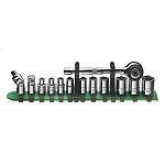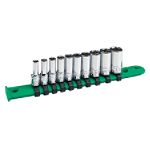 Contains:10 Piece 3/16", 7/32", 1/4", 9/32", 5/16", 11/32", 3/8", 7/16", 1/2", 9/16" Sockets. Packaged on a SureGrip plastic socket rail.... |
