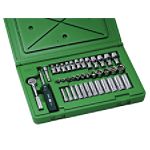 Contains: 4.5" Pro Ratchet; 6" Extension Spinner Handle; 2" Extension; 5mm, 5.5mm, 6mm, 7mm, 8mm, 9mm, 10mm, 11mm, 12mm, 13mm, 14mm, 15mm Standard Sockets; 5mm, 5.5mm, 6mm, 7mm, 8mm, 9mm, 10mm, 11mm, 12mm, 13mm, 14mm, 15mm Deep Sockets; 5mm, 5.5mm, 6mm, 7mm, 8mm, 9mm, 10mm, 11mm, 12mm, 13mm, 14mm, 15mm Flex Sockets. Packaged in a molded plastic case.... |