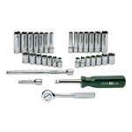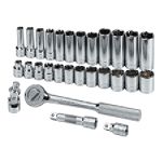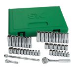 47 piece set features SK's high polish SuperKrome finish, which protects the tools from the harsh working environments found in today's workplace. Contains: 7.5" Pro Ratchet; 3", 6" Extensions; 1/4", 5/16", 3/8", 7/16", 1/2", 9/16", 5/8", 11/16", 3/4", 13/16", 7/8" Standard Sockets; 3/8", 7/16", 1/2", 9/16", 5/8", 11/16", 3/4", 13/16", 7/8" Deep Sockets; 6mm, 7mm, 8mm, 9mm, 10mm, 11mm, 12mm, 13mm, 14mm, 15mm, 16mm, 17mm, 18mm, 19mm Standard Sockets; 10mm, 11mm, 12mm, 13mm... |  SK 32 Pc 1/4" Drive 6 Point Fractional/Metric Socket Set | Product# 00999578000P Selling for $212.99 ()