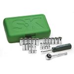 32 piece set features SK's high polish SuperKrome finish, which protects the tools from the harsh working environments found in today's workplace. Contains: 4.5" Pro Ratchet; 6" Spinner Handle; 2", 6" Extensions; 1/4", 9/32", 5/16", 11/32" 3/8", 7/16", 1/2" Standard Sockets; 1/4", 9/32", 5/16", 11/32", 3/8", 7/16", 1/2" Deep Sockets; 6mm, 7mm, 8mm, 9mm, 10mm, 11mm, 12mm Standard Sockets; 6mm, 7mm, 8mm, 9mm, 10mm, 11mm, 12mm Deep Sockets. Packaged in a metal box.... |  SK 13 Pc 3/8" Drive 6 Point Standard Metric Socket Set | Product# 00999579000P Selling for $69.99 ()