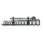 Contains: 1/4'', 5/16'', 3/8'',7/16'', 1/2'', 9/16'', 5/8'', 11/16'',3/4'',13/16'',7/8'',3/8'F-1/4"M Adapter, Palm Control Ratchet. Packaged on a green SureGrip nylon spring loaded ball retention clip rail with ratchet holder.... |  SK 18 Pc 3/8" Drive 6 Point Fractional Socket Set | Product# 00999571000P Selling for $150.99 ()
