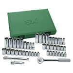30 piece set features SK's high polish SuperKrome finish, which protects the tools from the harsh working environments found in today's workplace. Contains: 7.5" Pro Ratchet; 3", 6" Extensions; 3/8", 7/16", 1/2", 9/16", 5/8", 11/16", 3/4" Standard Sockets; 3/8", 7/16", 1/2", 9/16", 5/8", 11/16", 3/4" Deep Sockets; 12mm, 13mm, 14mm, 15mm, 17mm, 19mm Standard Sockets; 12mm, 13mm, 14mm, 15mm, 17mm, 19mm Deep Sockets; 5/8" Spark Plug Socket. Packaged in a metal box.... |  SK 47 Pc 3/8" Drive 6 Point Fractional/Metric Socket Set | Product# 00999575000P Selling for $305.99 ()