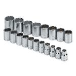 21 piece set features SK's high polish SuperKrome finish, which protects the tools from the harsh working environments found in today's workplace. Contains: 10mm, 11mm, 12mm, 13mm, 14mm, 15mm, 16mm, 17mm, 18mm, 19mm, 20mm, 21mm, 22mm, 23mm, 24mm, 25mm, 26mm, 27mm, 28mm, 30mm, 32mm Deep Sockets. Packaged on a rail.... |  SK 21 Pc 1/2" Drive 12 Point Deep Metric Socket Set | Product# 00999595000P Selling for $290.99 ()