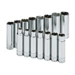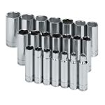 15 piece set features SK's high polish SuperKrome finish, which protects the tools from the harsh working environments found in today's workplace. Contains: 10mm, 11mm, 12mm, 13mm, 14mm, 15mm, 16mm, 17mm, 18mm, 19mm, 20mm, 21mm, 22mm, 23mm, 24mm Metric Sockets. Packaged on a rail.... |  SK 21 Pc 1/2" Drive 6 Point Deep Metric Socket Set | Product# 00999594000P Selling for $281.99 ()