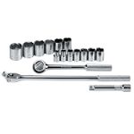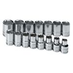 21 piece set features SK's high polish SuperKrome finish, which protects the tools from the harsh working environments found in today's workplace. Contains: 10mm, 11mm, 12mm, 13mm, 14mm, 15mm, 16mm, 17mm, 18mm, 19mm, 20mm, 21mm, 22mm, 23mm, 24mm, 25mm, 26mm, 27mm, 28mm, 30mm, 32mm Deep Sockets. Packaged on a rail.... |  SK 15 Pc 1/2" Drive 6 Point Standard Metric Socket Set | Product# 00999596000P Selling for $125.99 ()