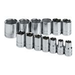 19 piece set features SK's high polish SuperKrome finish, which protects the tools from the harsh working environments found in today's workplace. Contains: 10mm, 11mm, 12mm, 13mm, 14mm, 15mm, 16mm, 17mm, 18mm, 19mm, 20mm, 21mm, 22mm, 23mm, 24mm, 25mm, 26mm, 27mm, 28mm Standard Sockets. Packaged on a rail.... |  SK 13 Pc 1/2" Drive 6 Point Standard Fractional Socket Set | Product# 00999598000P Selling for $111.99 ()