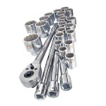 Each socket is easy to read and stamped for easy identification. 20 12-pt. sockets (7/8 thru 2 1/4 in.); quick-release ratchet; 5, 8 and 16-inch extension bars. Comes in a blowmolded case. Wt. 30 lbs. Catalog/Online Exclusive.... |