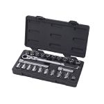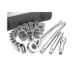 Each socket is easy to read and stamped for easy identification. 18 12-pt sockets (19 thru 30, 32, 35, 36, 38, 41 and 42 mm); quick-release ratchet; 5, 8 and 16-inch extension bars. Comes in a blow-molded case. Wt. 26.5 lbs. Catalog/Online Exclusive.... |