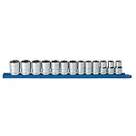 Set includes the following range of sockets: 12MM, 13MM, 14MM, 15MM, 16MM, 17MM, 18MM, 19MM, 20MM, 21MM, 22MM, 23MM and 24MM. Sockets are full polish nickel chrome plated. Large hard stamp identification. Turn down at base provides grip surface to pull sockets off ratchets. Entry angle guides fastener. Packaged on slide rail.... |