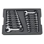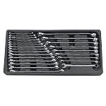 Set includes the following SAE sizes: 3/8", 7/16", 1/2", 9/16", 5/8", 11/16", 3/4", 13/16", 7/8" and 15/16" and metric sizes 10MM, 11MM, 12MM, 13MM, 14MM, 15MM, 16MM, 17MM 18MM and 19MM. Open end provides stronger grip on fasteners, reduces fastener rounding and delivers up to 25% more torque. Offset box end. Size stamped on both sides and head of wrench. Excellent when working in cramped compartments. Includes plastic storage tray.... |