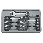 Set includes the following SAE sizes: 3/8", 7/16", 1/2", 9/16", 5/8", 11/16", 3/4", 13/16", 7/8" and 15/16". Open end provides stronger grip on fasteners, reduces fastener rounding and delivers up to 25% more torque. Offset box end. Size stamped on both sides and head of wrench. Excellent when working in cramped compartments. Includes plastic storage tray.... |