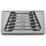 Includes sizes 1/4", 9/32", 5/16", 11/32", 3/8", 7/16", 1/2", 9/16", 5/8", 11/16", 3/4", 13/16", 7/8", 15/16", and 1". Long pattern provides access to hard to reach fasteners as well as additional leverage. Open end provides stronger grip on fasteners, reduces fastener rounding and delivers up to 25% more torque. Offset box end. Size stamped on both sides and head of wrench. Packaged in plastic storage tray.... |