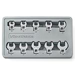 Includes sizes 3/8", 7/16", 1/2", 9/16", 5/8", 11/16", 3/4", 13/16", 7/8", 15/16" and 1". Crowfoot wrenches that fit a 3/8" Drive tang. Size stamped on both sides of head. Packaged in plastic storage tray.... |