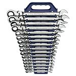 Ratcheting box end flexes 180 degrees letting you attack the fastener from any angle. Set includes sizes 5/16", 11/32", 3/8", 7/16", 1/2", 9/16", 5/8", 11/16", 3/4", 13/16", 7/8", 15/16" and 1". Includes plastic tray for organizing and storing tools.... |