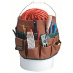 Three tiers of pockets 12 large, 22 narrow, 2 pockets with flapped velcro closure and a loop designed to hold and dispense tape Additional 24 pockets and 2 hammer loops on the interior of the bag Fits over 5 gallon pail, not included... |