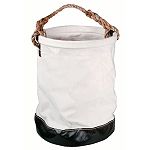 Rugged canvas bucket with rigid bottom reinforced with leather 8 in. x 8 in. inside pocket Rope handle is reinforced with leather where it is spliced around non-conductive top ring... |