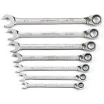 7 pc. Reversible Ratcheting Wrench Set With Plastic Storage Tray includes sizes 3/8, 7/16, 1/2, 9/16, 5/8, 11/16, and 3/4 in. Each wrench features a ratcheting box end with reversing lever to speed the removal and installation of fasteners. Closed head desi add strength by reducing dirt and debris infiltration. Requires as little as 5 degrees of ratcheting arc. One-piece design and construction will not split apart like traditional ratcheting box wrenches. Comes with plastic storage tray.... |
