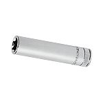 Socket flexes providing access to hard to reach fasteners. Socket is full polish nickel chrome plated. Large hard stamp identification. Turn down at base provides grip surface to pull sockets off ratchets. Entry angle guides fastener... |