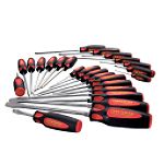 Includes 16 slotted (3/32 x 1 1/2, 1/8 x 2, 1/8 x 4, 3/16 x 1 1/2 stubby, 3/16 x 4, 3/16 x 4 cabinet, 3/16 x 6, 3/16 x 8 cabinet, 3/16 x 9, 1/4 x 1 1/2, 1/4 x 4, 1/4 x 6, 1/4 x 8, 1/4 x 12, 5/16 x 6, 3/8 x 8 in.); nine phillips (#0 x 1 1/2, #0 x 2 1/2, #1 x 1 1/2 stubby, #1 x 3, #2 x 1 1/2, #2 x 4, #2 x 6, #2 x 8, #3 x 6 in.); seven Torx (T6, T10, T15, T20, T25, T27, T30); two Robertson junior (#1, #2); two offset (1/4 x 1/4 in. slotted and #1 x #2 phillips; one scratch awl and one 4-way pocket driver. Separate prices total $173.61. Wt. 7.1 lbs.... |  Craftsman 15 pc. Heavy-Duty Screwdriver Set | Product# 00950088000P Selling for $39.99 ()
