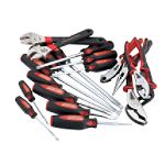 The ideal all-purpose set for home or workshop, this set includes 21 screwdrivers, nine slotted (3/32 x 1 1/2, 1/8 x 2, 1/8 x 4,3/16 x 4, 1/4 x 1 1/2, 1/4 x 4, 1/4 x 6, 5/16 x 1 3/4, 5/16 x 8 in.); six phillips (#0 x 1 1/2, #0 x 2 1/2, #1 x 3,#2 x 1 1/2, #2 x 4, #3 x 6 in.); six Torx (T10, T15, T20, T25, T27, T30); one scratch awl and one 4-way pocket driver. Also includes 6- and 8inch wrenches; six pliers (6-inch diagonal cut, 6 1/2inch long nose, 6 3/4-inch slip joint, 7-inch wide jaw, 8-inch slip joint, 9 1/2-inch arc joint); punch and chisel holder with five punch tools (3/8 x 4 1/2 prick, 3/8 x 4 1/2 center, 1/16 x 4 pin, 3/32 x 4 pin, 1/8 x 4 1/2 in. pin); two alignment tools (5/32 x 7, 3/16 x 9 in.); cold chisels (1/2 x 5 3/4, 5/8 x 6, 3/4 x 6 1/2 in.). Wt. 11.75 lbs.... |  Craftsman 27 pc. Comfort Fit Screwdriver Set | Product# 00950091000P Selling for $49.99 ()
