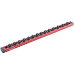 18 in. long locking socket rack holds 14 sockets. Magnetic backing. Fits all major brands of sockets. Can be used as both a peg access, or as a locking system to keep tools in place. To lock sockets, simply place your socket on the post and rotate the socket 1/4 turn to the right. Operates easily with one hand. Portable and easy to move. Sticks to most metal surfaces. Rust resistant.... |