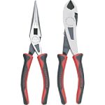 2 pc. set includes 8 in. wide jaw diagonal and 8 in. long nose pliers. Both have a high leverage design for increased grip and cutting, and an improved cutter design for longer wear. Cutting edges are heat-treated, hardened steel. Pliers feature a tough clear protective coating and ergonomic dual material handle. Long nose pliers also have multiple jaw working areas for gripping different sized materials.... |