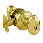 Forged solid brass egg knob, entry function lockset in polished brass Eternity Finish. Panic proof and automatic release. Keyed alike in 3s. Removable and rekeyable 6 pin solid Brass cylinder. SC4 keyway. Adjustable latch with radius corners. Fits standar... |