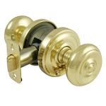 Forged Solid Brass Round Button Passage Knob lockset in Polished Brass Finish. Adjustable latch with radius corners. Fits standard doors 1-3/8in -1-3/4in thick. Tubular Construction, Easy Installation. Forged Solid Brass. Polished Brass Finish/Eternit... |