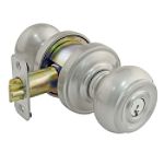 Forged Solid Brass Round Button Entry knob lockset in Satin Nickel Finish. Panic proof and automatic release. Keyed Alike in 3s. Removable and rekeyable 6 pin solid brass tumbler cylinder. SC4 keyway. Adjustable latch with radius corners. Fits Standard do... |