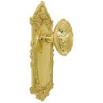 Forged Brass Period Escutcheon Style Passage Egg knob in Polished Brass. Cylindrical Construction. 8in Backplate. 2-3/8in backset with radius corners. Fits standard doors 1-3/8in -1-3/4in thick. Forged Brass. Polished Brass Finish. Ornate 8" Escutch... |