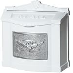 Gaines Wallmount Mailbox, White with Satin Nickel Eagle Design | Product# 08324682000P Selling for $144.87