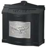 The premier Wall Mount Mailbox. Our Wallmount Mailbox adds class with its timeless design, distinctive look, and quality construction. You will appreciate its large capacity designed to accommodate bundles of mail, magazines, small packages and more. Its smooth and quietly operating door lid shuts gently on soft pads and can be positioned to stay upright while retrieving mail. Constructed of rust-free cast aluminum and powder coated for durability, each mailbox is handsomely accented with a highly detailed solid brass eagle design. Includes mounting template and hardware.... |