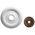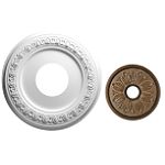Focal Point Renaissance Finished Medallion Quick Clip Medallion Installation System eliminates the need to apply adhesive to the medallion back and screws through the medallion face The Renaissance ceiling medallion by Focal Point is available in 3 different sizes and is adorned by a rope edge and flowers internally, it is beautiful and delicately ornate It measures: 23 7/8 inch diameter, 5 inch canopy opening, and 11/8 inch projection from ceiling It is f... |