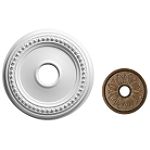 Focal Point Renaissance Finished Medallion Quick Clip Medallion Installation System eliminates the need to apply adhesive to the medallion back and screws through the medallion face The Renaissance ceiling medallion by Focal Point is available in 3 different sizes and is adorned by a rope edge and flowers internally, it is beautiful and delicately ornate It measures: 17 7/8 inch diameter, 4 3/8 inch canopy opening, and 11/8 inch projection from ceiling It... |