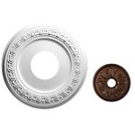 Focal Point Renaissance Finished Medallion Quick Clip Medallion Installation System eliminates the need to apply adhesive to the medallion back and screws through the medallion face The Renaissance ceiling medallion by Focal Point is available in 3 different sizes and is adorned by a rope edge and flowers internally, it is beautiful and delicately ornate It measures: 17 7/8 inch diameter, 4 3/8 inch canopy opening, and 11/8 inch projection from ceiling It... |