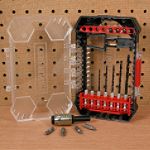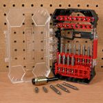 Set includes: 2-in-1 connector, seven titanium hex shank drill bits (1/16 in., 5/64 in., 3/32 in., 7/64 in., 1/8 in., 5/32 in., 3/16 in.), three magnetic nut drivers (1/4 in., 5/16 in., 3/8 in.), two hex-to-square adapters (1/4 in., 3/8 in.), compact screw guide, eighteen assorted 1 in. insert bits, two assorted 2 in. power insert bits, compact drill/drive body, #8 x 7/64 in. countersink insert and two #8 x 7/64 in. replacement drill bits, two set screws. Also includes case.... |