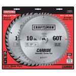 Craftsman 10 in. Blade Pack includes a 40 tooth blade for general purpose cutting and a 60 tooth blade for smooth or cross cuts. The carbide teeth last up to 10 times longer than regular steel teeth.... |